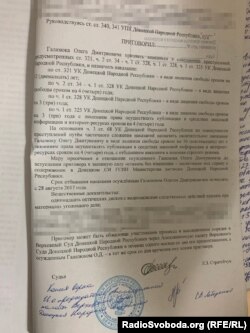 У копії «рішення суду» вказано, що Галазюк «діючи з мотивів власного неприйняття ідей формування і функціонування «ДНР» як самостійної держави і прагнення її до інтеграції з Росією, маючи інші погляди на шляхи і перспективи державного будівництва в Донецькому регіоні… вступив у злочинну змову з журналістом Київського бюро інформаційної служби Радіо Свобода…, спрямовану на написання статей, що відображали життя в «ДНР» із негативного боку».
