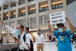 Протестувальники також зібралися в торгових центрах в обідній час, тримаючи плакати з написом «Волю Гонконгу».