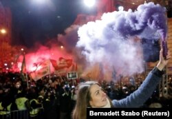 Тисячі демонстрантів протестували біля будівлі державного телебачення Угорщини 17 грудня – у п’ятий день виступів проти уряду прем’єра Віктора Орбана. Люди вигукували: «Ми не підемо» і «Вони брешуть день і ніч».