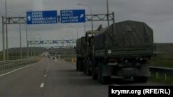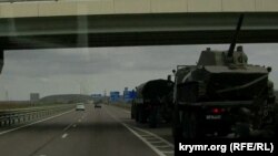 В окупованому Криму в Керчі зафіксували колону різноманітної російської військової техніки. Як повідомили проекту Радіо Свобода Крим.Реалії очевидці, у складі колони – вантажівки для перевезення особового складу, спеціалізована техніка та тягачі, які перевозять гармати.