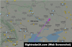 Літак зайшов на повітряний простір України близько 7:00. Спочатку він летів у бік Харкова, а потім почав робити кола на південному заході області.