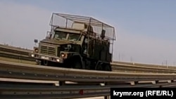 Кримчани помічають на трасі «Таврида» різні види російської військової техніки. Як повідомили проєкту Радіо Свобода Крим.Реалії очевидці, у складі військових колон, які російська армія перекидає в окупованому Криму, в тому числі з’явилися автомобілі з ґратами над кузовом, ймовірно, для захисту від дронів.