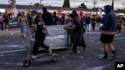 Друга акція, що відбулася увечері в центрі Лос-Анджелеса, зібрала близько 60 людей, які скандували «ICE, геть із Лос-Анджелеса!», пише агентство Reuters.