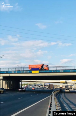 Окрім того, український прапор вивісили у Москві на московській кільцевій дорозі.