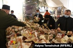 У львівському будинку офіцерів військові капелани Української греко-католицької церкви та Православної церкви України освятили великодні кошики для учасників Операції об’єднаних сил (ООС) та родин загиблих Героїв війни на Донбасі. Окрім традиційних паски, ковбаси, масла, хрону, солі поклали маски і антисептик.
