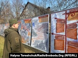 Два десятки інформаційних банерів презентують навпроти руїн музею, де 5 березня 1950 року Роман Шухевич прийняв свій останній бій з енкаведистами. Цей будинок був зруйнований Росією безпілотником 1 січня цього року.