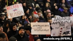 Ввечері 20 грудня близько півтори тисячі людей, переважно молодь, пройшли ходою центром Мінська і провели біля Будинку уряду мітинг проти інтеграції з Росією, повідомляє кореспондент Радіо Свобода.