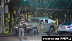 На в’їзді до Мінська, столиці Білорусі, де 9 серпня відбуваються вибори президента, стоять пости ДАІ, разом із міліціонерами на місці перебувають і солдати.
