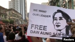 Учасники акцій засуджують диктатуру й арешт фактичної лідерки країни Аун Сан Су Чжі.