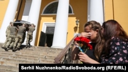 На церемонію прийшли родичі, друзі та учасники бойових дій на Донбасі.
