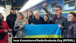Журналіста проєкту Радіо Свобода Крим.Реалії Миколу Семену зустріли на вокзалі в Києві.