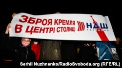 Біля будівлі телеканалу «Наш» 2 лютого кількасот людей провели акцію, вимагаючи запровадити санкції проти цього телеканалу та його власника, проросійського політика Євгенія Мураєва.