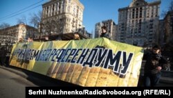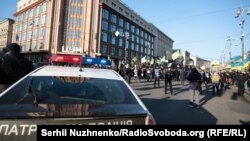 Представники праворадикальної партії «Національний корпус» перекрили рух транспорту на Хрещатику в Києві, протестуючи проти ухвалення закону про відкриття ринку землі сільськогосподарського призначення.