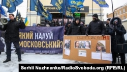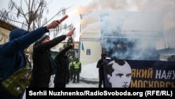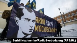 Під Окружним адміністративним судом Києва у п’ятницю пройшла акція протесту проти рішення суду щодо скасування перейменування у столиці Московського проспекту на проспект Бандери.