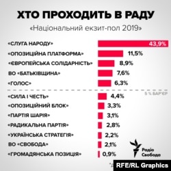 Всього ж, за даними екзит-полів, на державне фінансування можуть претендувати до 11 партій – від лідера перегонів, «Слуги народу», до «Радикальної партії Олега Ляшка» (2,8%), «Української стратегії Гройсмана» (2,2%) та Всеукраїнського об’єднання «Свобода» (2,1%).