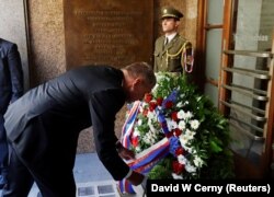 Як повідомляє кореспондент Радіо Свобода, акція покладання квітів перетворилася на гучну демонстрацію проти чеського прем’єра Андрея Бабіша, який взяв участь у заході вшанування загиблих.
