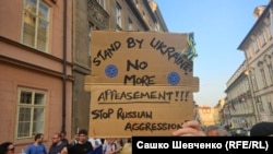 Як передає кореспондент Радіо Свобода, подія біля американського диппредставництва у чеській столиці пройшла у форматі мовчазного протесту – без промов. Кілька десятків учасників вийшли із банерами, на які нанесли гасла «Нема Нобелівської премії миру за умиротворення зла», «Не продавайте Україну», «Це не дипломатія, а знову 1938 рік».