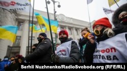 Протестувальники, які виступають на захист інтересів фізичних осіб-підприємців (ФОПів), 4 грудня знову зібралися на акцію біля Верховної Ради. Як повідомляє кореспондент Радіо Свобода, вони перекрили вулицю Грушевського, як і під час попереднього протесту 1 грудня, і знову планують пройти маршем.