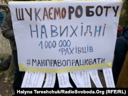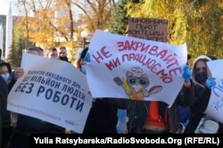 Учасники акції вимагають від чиновників дослухатися до проблем їхнього бізнесу та скасувати введення карантину вихідного дня.