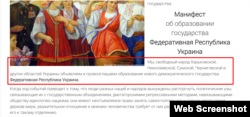 «Ми, вільний народ Харківської, Миколаївської, Сумської, Чернігівської та інших областей України оголошуємо та проголошуємо створення нової демократичної держави Федеративна Республіка Україна», – такі тези масово ширяться російським інтернет-простором.
