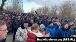 У Нових Санжарах Полтавської області мітингують через прибуття евакуйованих з Китаю.