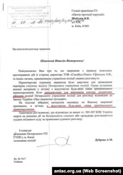 «На підставі зібраних матеріалів перевірку по вашому зверненюі припинено в зв’язку з відсутністю будь-яких ознак кримінального правопорушення», – мовиться у документі.