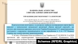 Паралельно свою перевірку після сюжету «Схем» вже провели Національному агентстві з питань запобігання корупції. Там встановили в діях нардепа «вчинення дій або прийняття рішень в умовах реального конфлікту інтересів», але протокол про адміністративне правопорушення складений не буде, бо НАЗК втратило такі функції після рішення Конституційного суду, повідомили у відомстві на запит Радіо Свобода.