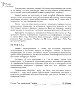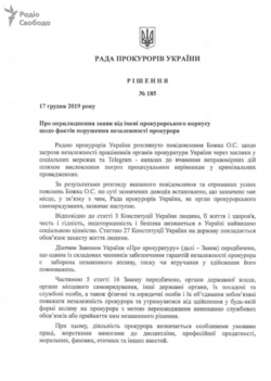 «Вважати неприпустимими та такими, що підлягають засудженню висловлювання у соціальних мережах та telegram-каналах до вчинення неправомірних дій, шляхом висловлення погроз процесуальним керівникам у кримінальних провадженнях, так як останні мають ознаки загрози незалежності працівників прокуратури України», – йдеться у рішенні від 17 грудня.