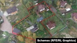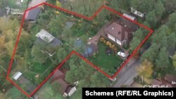 Якщо подивитися на територію згори, то видно що між земельною ділянкою Олександра Тупицького та ділянками, оформленими на його тещу Ларису Колпаченко, немає паркану, і це одна спільна територія – на якій стоїть великий маєток та декілька додаткових споруд, також тут розташований басейн та невеликий ставок.