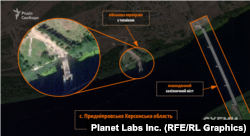 Супутник Planet Labs зафіксував, що російські військові почали використовувати окрему поромну переправу для переміщення техніки через Дніпро неподалік окупованого Херсону. Знімки, що це підтверджують, є у розпорядженні «Схем» (Радіо Свобода). Це вже друга переправа, яку побудували окупанти після точних ударів Збройних сил України по Антонівському автомобільному та залізничному мостах. Як повідомляла раніше британська розвідка, російські війська побудували біля Херсону два понтонні мости і обладнали поромну переправу, щоб компенсувати пошкодження цих мостів.