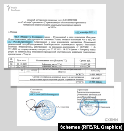 Наприклад, «Схеми» наводять акт наданих послуг за 2022 рік за контрактом з одним із підрозділів Росгвардії – центральним – на загальну суму майже 40 мільйонів рублів (18,3 мільйона гривень).