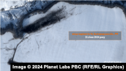 У розпорядженні «Схем» (Радіо Свобода) з’явилися супутникові знімки Planet Labs за 31 січня, на яких видно місце падіння російського військово-транспортного літака Іл-76. Слід, який залишив літак при падінні, простягається приблизно на 500 метрів. Борт впав 24 січня цього року біля села Яблоново у Бєлгородській області РФ.