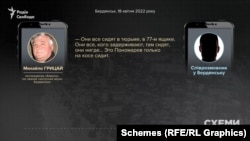 «Всі сидять у в’язниці, у «77-му ящику» (виправна колонія у Бердянську – ред.). Вони всі, кого затримують, там сидять… Це Пономарьов тільки на косі сидить» – розповідав співрозмовнику Михайло Грицай – колишній головний спеціаліст «Азмолу», який став співпрацювати з окупантами та отримав від них посаду заступника мера Бердянська, нині його офіційно підозрюють у колабораціонізмі.