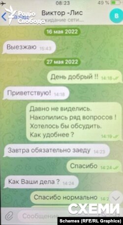 Також правоохоронці виявили у телефоні листування з контактом на ім’я Віктор «Лис». За даними джерел «Схем» в правоохоронних органах – це також працівник ФСБ, підлеглий «Богуна».