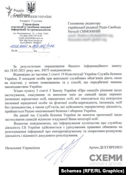 У відповіді Ради нацбезпеки, зокрема, йдеться: «Рада національної безпеки і оборони України розглядає питання щодо застосування, скасування та внесення змін до санкцій виключно на підставі пропозицій Верховної Ради України, президента України, Кабінету міністрів України, Національного банку України, Служби безпеки України. У разі надходження пропозицій щодо застосування санкцій стосовно зазначеної у Вашому запиті особи від уповноважених Законом України «Про санкції» державних органів вони будуть винесені на розгляд РНБО України в установленому порядку».