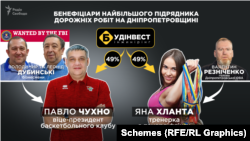 Таким чином, професійна спортсменка та баскетбольний функціонер, напряму пов’язані з головою ОДА Валентином Резніченком та розшукуваними бізнесменами братами Дубинськими, йдеться у розслідуванні.