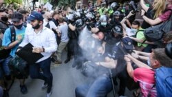 Поки суд був у нарадчій кімнаті, під будівлею суду відбулась друга за день сутичка, в перебігу якої в бік правоохоронців активісти жбурляли пляшки із водою, поліція у відповідь розпилила вміст балончика із газом, повідомив кореспондент Радіо Свобода з місця події.