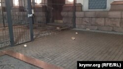 Як повідомляє кореспондент проєкту Радіо Свобода Крим.Реалії, активісти принесли личаки (російською «лапти») і кидали їх на територію посольства. Їм почали чинити спротив співробітники поліції.