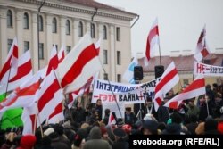 У столиці Білорусі на Жовтневій площі вже вчетверте відбулися акції проти інтеграції з Росією, повідомляє білоруська служба Радіо Свобода.