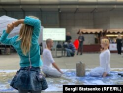 «Ми зробили таку перформативну акцію, де залучені сучасні аудіоінструменти, тіло перформера і, власне, матеріальні речі, які дійсно автентичні. Це, зокрема, і ракушняк, з якого кримські татари будували свої будинки, коли поверталися. Це і справжні камінці з Криму, які мені звідти привозять. Хотілося показати, як на землю любові приходить насильство. Дуже хотілося, аби люди відчули той біль, який зараз відчувають тисячі людей у Криму», — розповіла Радіо Свобода Галина Джикаєва, режисерка київського «PostPlayТеатр».