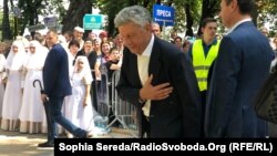 На Володимирську гірку прийшли також політики, зокрема представники «Опозиційної платформи – За життя» Михайло Папієв і Юрій Бойко, якого зустріли аплодисментами і співами «Многая літа».
