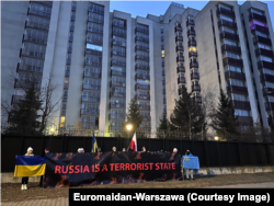 О шостій ранку 24 лютого польські та українські активісти у Варшаві розбудили російських дипломатів звуками повітряної тривоги і вибухів. Кількадесят активістів під будинком, де живуть російські дипломати, розгорнули плакат з написом Russia is a terrorist state і увімкнули звуки сирени та вибухів. Також перераховували злочини, скоєні Росією за 11 років вийти.
