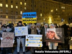 Крім прохання надати зброю, на акції звучали ще й інші вимоги, зокрема, передати заморожені російські активи Україні для закупівлі зброї і відбудови, а також ізолювати російських дипломатів від усього цивілізованого світу.