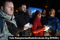 Учасники акції – громадські активісти, волонтери, священики, рідні загиблих на Донбасі бійців – запалили лампадки та свічки й разом виконали гімн України.