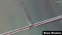Агентство Reuters опублікувало супутникові фото американських компаній Maxar Technologies і Planet Labs, на яких видно руйнування внаслідок вибуху і пожежі на Керченському (Кримському) мосту 8 жовтня, що з’єднує окупований Крим із територією Росії.