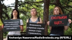 «Виходжу на акції, бо втомилися. Влада мовчить. То 18 місяців, то 24, то 30-3, а може 48 місяців служби. З квітня 22 року постійно у зоні бойових дій – Запоріжжя, Харків, Бахмут. Просто безвихідь, а він настільки вимотався. В нього моральний дух вже нижче плінтуса – весь на нервах. Офіцер. Починав зі стрілецького полку, піхота, зараз трохи вище. Вивіз родину за кордон. Двічі там був, повертався як порядний офіцер», – ділиться інша учасниця акції, вимушена переселенка з Донецької області Наталя, яка чекає на сина з фронту.