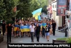 Учасники ходи до Дня Конституції пройшли центральним проспектом Запоріжжя від будівлі запорізької мерії до площі біля Запорізької облради, де відбувся мітинг, після якого учасники провели покладання вінка під стінами розташованого поряд суду.