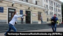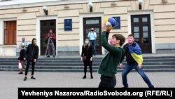 Як повідомляє кореспондент Радіо Свобода, захід відбувся у формі флешмобу, під час якого активісти у медичних пов’язках, респіраторах і протигазах грали у футбол, бадмінтон і волейбол.