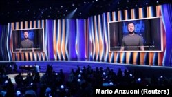 Президент України Володимир Зеленський 3 квітня виступив на церемонії вручення в Лас-Вегасі головної премії музичної індустрії США «Греммі» (Grammy) і закликав учасників заходу підтримати його країну «в будь-який спосіб».