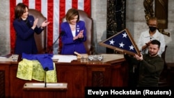 Подякувавши американцям за військову допомогу, Володимир Зеленський звернувся до Конгресу з проханням: «Ви нам дали артилерію, але цього недостатньо». Він запевнив аудиторію, що українські солдати здатні опанувати американську техніку, зокрема управління американськими танками і літаками.